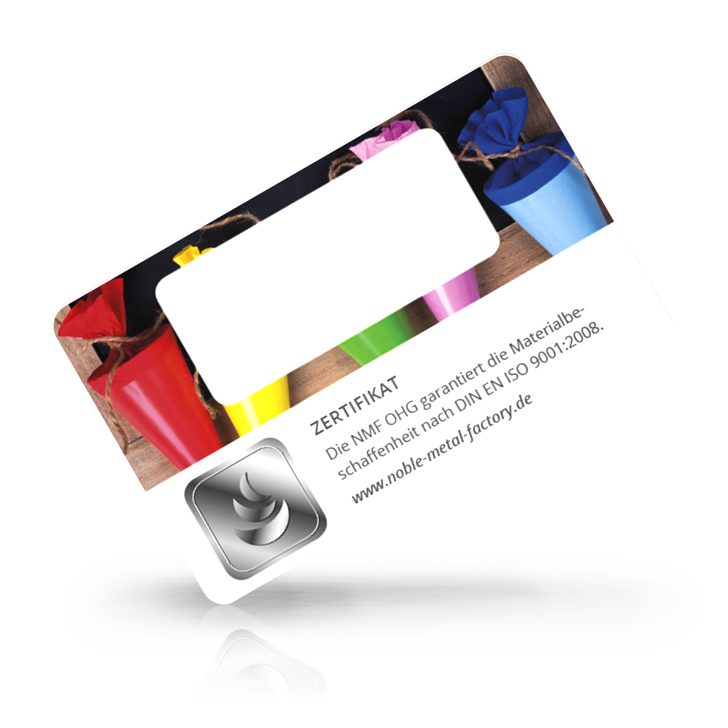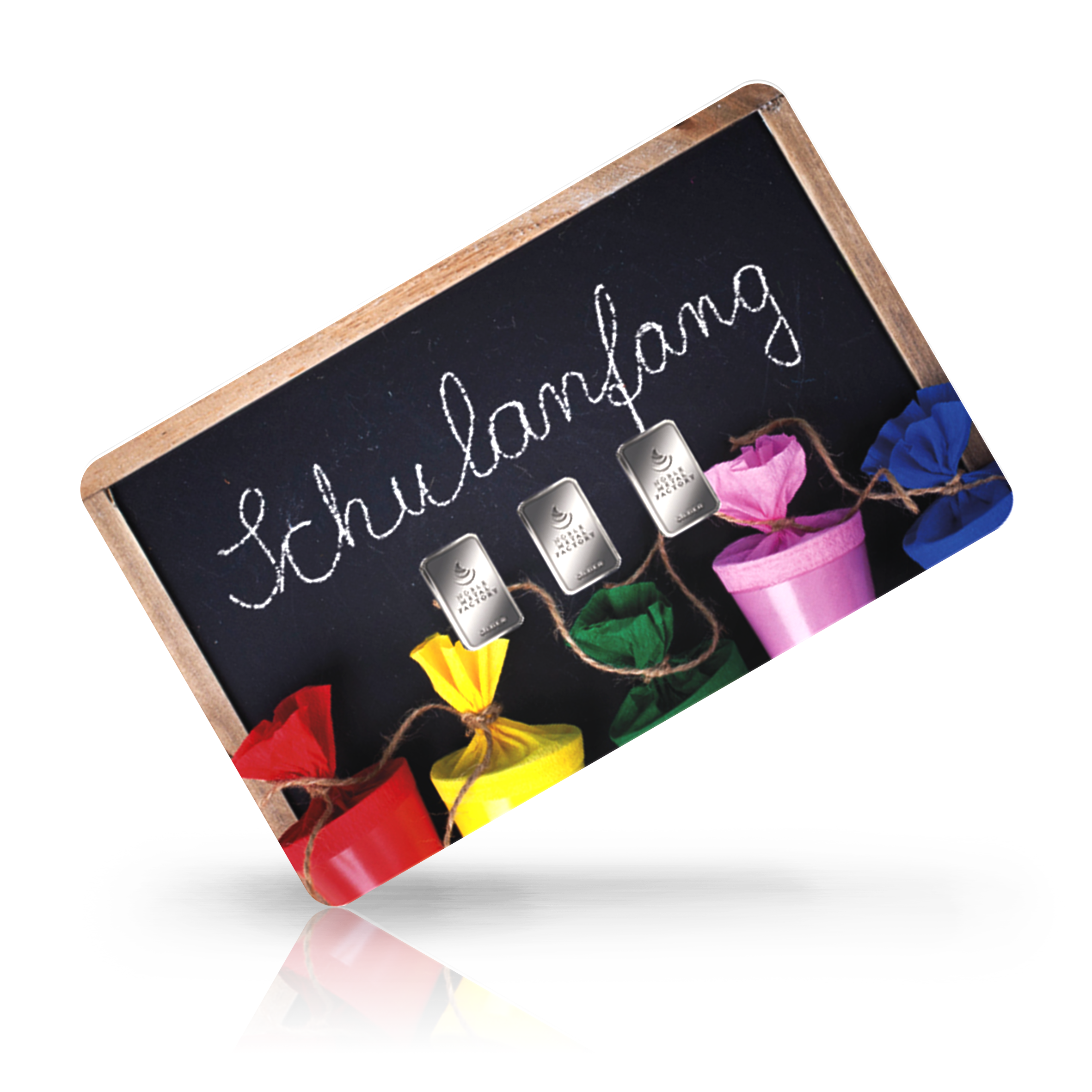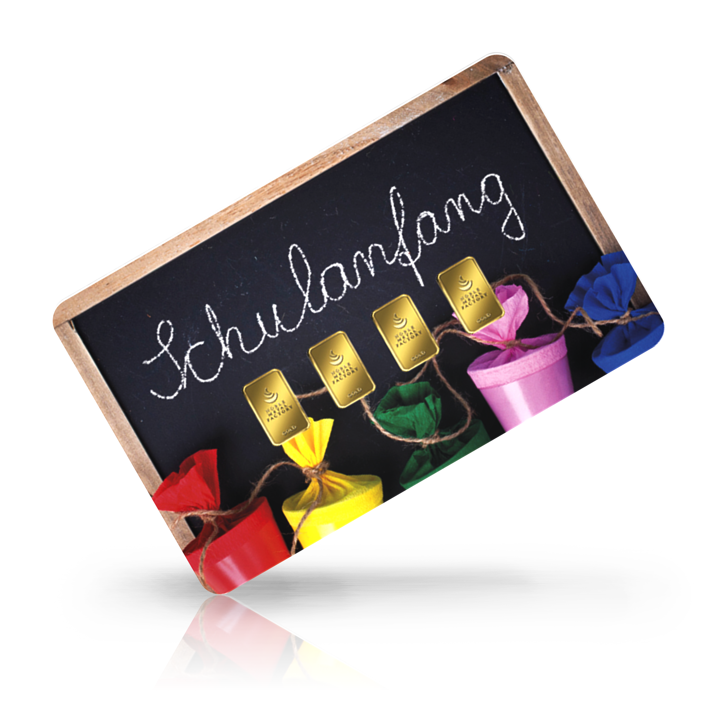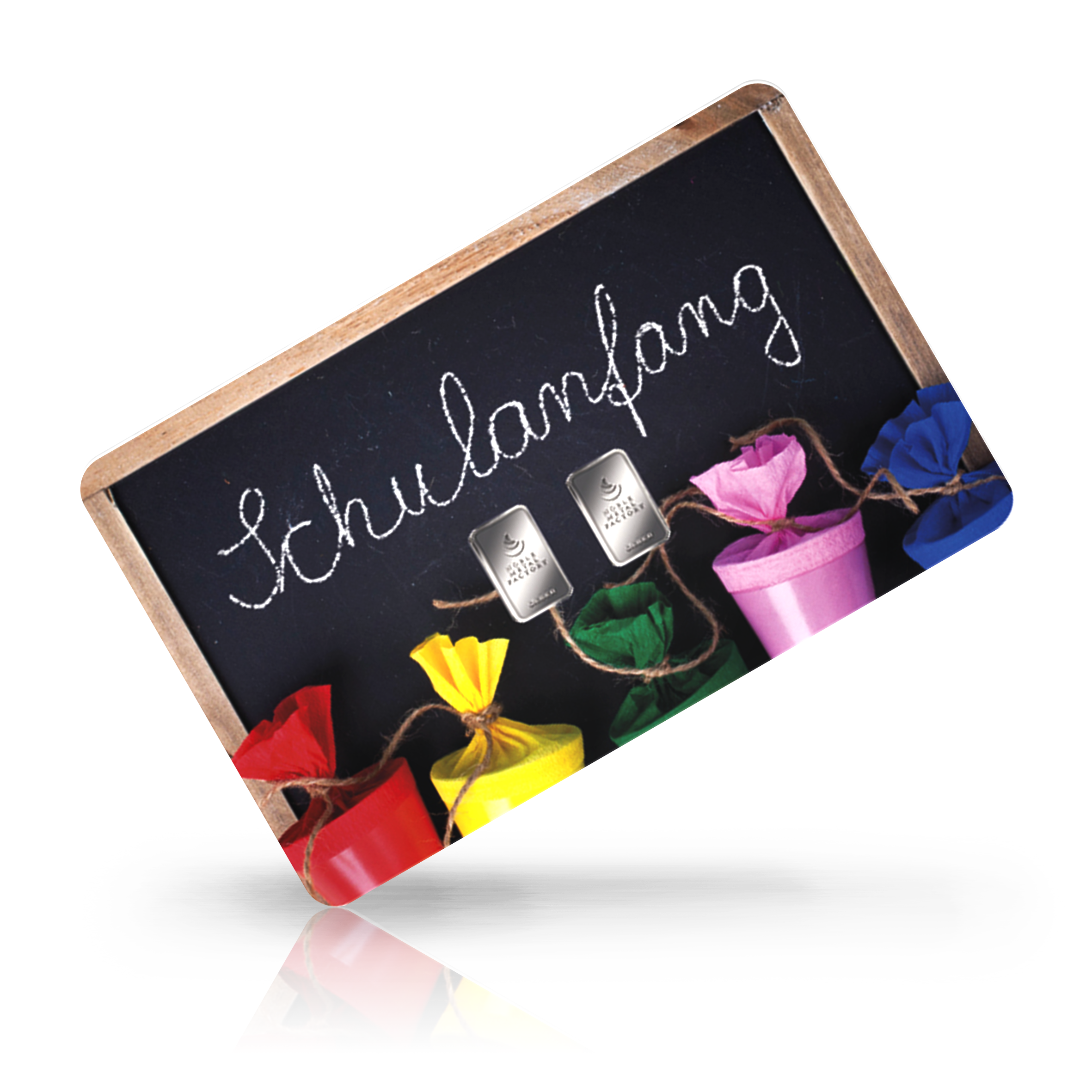 Gold- und Silberkarte Schulanfang bunte Schultüten